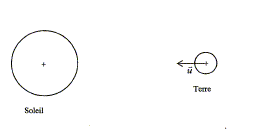 Masse de la Terre : Mt= 5,98.1024 kg ; masse du Soleil: Ms = 1,98.1030 kg ; constante de gravitation universelle : G = 6,67.10-11 SI ; célérité de la lumière dans le vide : c = 3,00.108m/s ; constante de Planck : h = 6,62.10-34 J.s ; 1 eV (électronvolt) = 1,60.10-19 J Mouvement de la Terre On considère le mouvement de la Terre autour du Soleil dans le référentiel héliocentrique considéré comme galiléen. On suppose que ce mouvement est circulaire uniforme, de rayon R = 1,50 1011 m. On néglige l'action de tout autre astre. On s'aidera du schéma suivant :