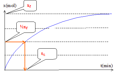 Le temps de demi réaction est la durée au bout de laquelle l'avancement est égal à la moitié de l'avancement final xf.
