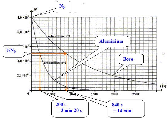 Les échantillons d'aluminium et de bore irradié suivent la loi de décroissance radioactive car ils contiennent des éléments radioactifs.