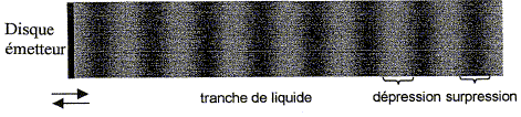 Données : - la température d'ébullition d'un liquide diminue quand la pression diminue. - définition d'une implosion : écrasement brutal d'un corps creux sous l'effet d'une pression extérieure supérieure à la pression intérieure. Une onde mécanique progressive est la propagation d'une perturbation dans un milieu matériel avec transport d'énergie, sans transport de matière. L'onde ultrasonore est longitudinale : l'onde et la perturbation ( variation de pression) se propagent dans la même direction. Interprétons brièvement la formation suivie de l'implosion des microbulles :