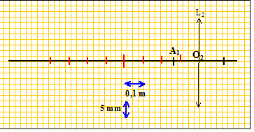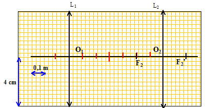Sur le schéma ci-dessous figurent le point A1 et la lentille L2 qui sert d'oculaire. Les échelles sont les suivantes : verticalement, échelle 1/1 ; horizontalement, échelle 1/10.