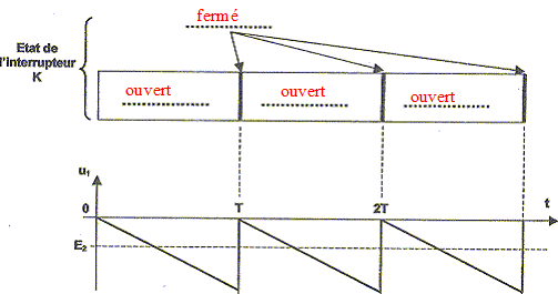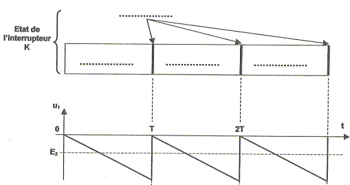 K est un interrupteur parfait commandé périodiquement. E1 est une tension constante.