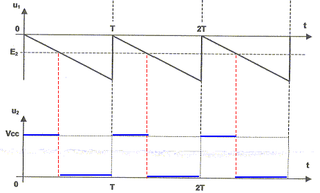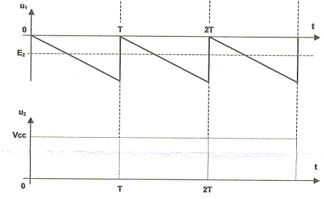 Expression de t1 en fonction de E1, R1, C et E2. u1 =-E1/(R1C) t1 = E2. t1 = - E2R1C / E1. Valeur moyenne <u2> de la tension u2 en fonction de T, t1 et VCC.