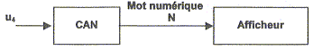 On considère que l'afficheur placé à la suite du CAN indique sur 3 digits (avec point décimal fixe) la valeur de N comme le montre l'exemple suivant : Pour N = 125, l'afficheur indique