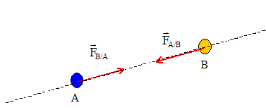 Action de la poudre de canon sur le boulet : Action : une force de poussée est donc exercée sur le boulet par l'ensemble {galiote + canon + gaz}. Réaction : le boulet exerce une force opposée sur l'ensemble {galiote + canon + gaz}. Le canon recule s'il n'est pas solidement arrimé. Enoncé de la 3è loi de Newton ou principe des action réciproques : Interaction entre un objet A et un objet B : si un solide noté A exerce sur un solide noté B une force notée F A / B, alors B exerce sur A une force notée F B / A . Les deux forces associées à une même interaction sont toujours égales et opposées.