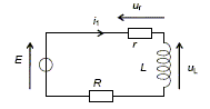 Réponse : additivité des tensions : E= uL+ur. uL= Ldi1/dt et ur = ri1 d'où : E= Ldi1/dt +ri1 soit di1/dt + r/L i1 = E/L. En régime permanent l'intensité est constant, donc di1/dt = 0 : E=rI1 soit I1 = E/r I1 =12/6,0 = 2,0 A. u2 = a di1/dt ; or, en régime permanent di1/dt = 0 ce qui entraîne u2=0. Si la tension de sortie u2 aux bornes de la bougie est très élevée, une étincelle se produit aux bornes de la bougie. Rupteur fermé, en régime permanent, u2=0, donc pas d'étincelle.