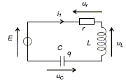 On prendra comme origine des dates, l'instant t = 0 s pour lequel q(t = 0 s) = Q0 + CE avec Q0 > 0. Donner l'expression littérale de l'intensité i1 =dq/dt . Donner l'expression littérale de d2q/dt2 . En remplaçant dans l'équation (2) d2q/dt2 et q , montrer que la fonction proposée est une solution de l'équation différentielle (2) si et seulement si g = 2p (LC)½ . Que représente g pour ce circuit ?
