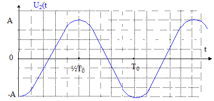 u2 = -aQ0 [2p/g]2 cos ( 2pt/g). En posant A = Q0 [2p/g]2 il vient u2(t) = -A cos ( 2pt/g) Allure de la variation de la tension u2(t) en fonction du temps :