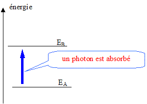 Depuis 1967, c'est l'horloge atomique au césium qui sert à définir la seconde. Cet appareil utilise les principes de la mécanique quantique : dans un atome, les niveaux d'énergie sont quantifiés. Cette horloge comprend un oscillateur à quartz. Le signal électrique oscillant est utilisé pour générer une onde électromagnétique de fréquence n = 9 192 631 770 Hz dans la cavité où on fait passer des atomes de césium 133. Si la quartz oscille à la bonne fréquence, les atomes absorbent le rayonnement et passent d'un niveau d'énergie EA au niveau d'énergie EB. Si la quartz se dérègle, ce n'est plus le cas et un système électronique agit sur la fréquence d'oscillation du quartz jusqu'à ce que les atomes absorbent à nouveau le rayonnement. Données : utiliser les valeurs arrondies ci-dessous pour les calculs. Constante de Planck : h = 6,63 10-34J.s 7 10-34 J.s Célérité de la lumière dans le vide et dans l'air : c = 299 792 458 m.s-1 3 108 m.s-1 n = 9 192 631 770 Hz 9 109 Hz Expliquer la phrase : " dans un atome les niveaux d'énergie sont quantifiés ". Calculer la longueur d'onde de l'onde électromagnétique émise. Calculer la différence d'énergie entre les niveaux A et B de l'atome de césium 133. Sur un diagramme, placer les niveaux d'énergie EA et EB puis représenter la transition effectuée par les atomes de césium qui absorbent l'onde. Niveaux d'énergie : Seul un petit nombre de valeurs sont possibles pour l'énergie d'un atome : on dit " les niveaux d'énergie sont quantifiés". Longueur d'onde de l'onde électromagnétique émise : l = c/n = 3 108 / 9 109 = 3/90 = 1/30 = 3,3 10-2 m. Différence d'énergie entre les niveaux A et B de l'atome de césium 133 : DE = hn = 7 10-34 * 9 109 = 6,3 10-24 J. "les atomes absorbent le rayonnement et passent d'un niveau d'énergie EA au niveau d'énergie EB"