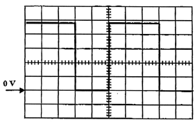 Bobine de lissage d'inductance L suffisamment élevée pour obtenir un courant i = I = constant. Valeur de la tension V fournie par la batterie : 4,8 divisions correspondent à