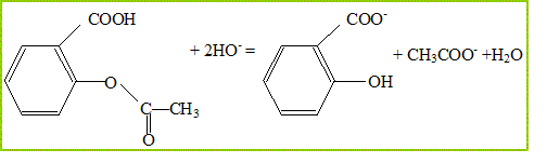 au niveau de ses tissus. Justifier le mode d'administration de cette formulation d'aspirine décrit dans le texte. "Boire immédiatement après dispersion complète des comprimés dans un grand verre d'eau, de préférence au moment des repas". L'aspirine peut provoquer des brûlures d'etomac si elle est prise en dehors des repas. Afin de vérifier l'indication " 500 mg " de la notice, on saponifie l'aspirine par un excès de soude et on dose cet excès par une solution d'acide chlorhydrique. Le protocole opératoire est le suivant : Introduire dans un ballon un comprimé d'aspirine simple, 10 mL d'eau distillée, 10,0 mL de solution de soude de concentration molaire cB = 1,0 mol.L-1 et quelques grains de pierre ponce. Chauffer le mélange à reflux pendant une vingtaine de minutes. Verser le contenu refroidi du ballon dans une fiole jaugée de 100,0 mL, récupérer l'eau de rinçage et compléter le niveau au trait de jauge avec de l'eau distillée. Doser alors 10,0 mL de cette solution par une solution d'acide chlorhydrique de concentration molaire cA = 5,0 10-2 mol.L-1 en présence de phénolphtaléine. Expérimentalement, le volume équivalent d'acide versé vaut : VAE = 8,4 mL. On modélise la transformation chimique ayant lieu avant le dosage par la réaction dont l'équation s'écrit :