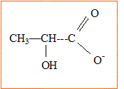 Formule semi-développée de l'ion lactate, base conjuguée de l'acide lactique : CH3-CHOH-COO-. Expression de la constante d'acidité Ka du couple acide lactique / ion lactate, noté AH / A- : AH (aq) +H2O = A- (aq) + H3O+(aq). Ka = [A-(aq) ]éq[H3O+(aq)]éq / [AH (aq) ]éq. Concentration en ion oxonium de la solution : [H3O+(aq)]éq = 10-pH = 10-2,9 = 1,3 10-3 mol/L. Taux d'avancement t de la réaction de l'acide lactique avec l'eau. Le tableau ci-dessous est établi pour un volume de solution V= 1 L.