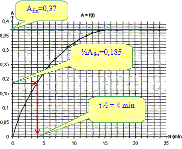 C'est la durée au bout de laquelle l'avancement est égal à la moitié de l'avancement final. Or ici avancement et absorbance sont proportionnels : à t½ l'absorbance est égale à la moitié de l'absorbance finale