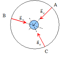 M : masse (kg) de la planète ; m : masse du satellite (kg) ; R (m) rayon planète ; h (m) altitude depuis le sol Représenter, sans souci d'échelle, le vecteur accélération à trois dates différentes correspondant aux positions A, B et C du satellite.