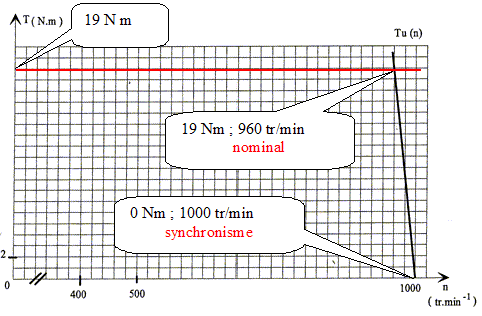 On admettra, dans ces conditions, que le moment du couple utile fourni par le moteur peut se mettre sous la forme : Tu = k (ns- n) où k est une constante, n et ns étant exprimées en tr / min.