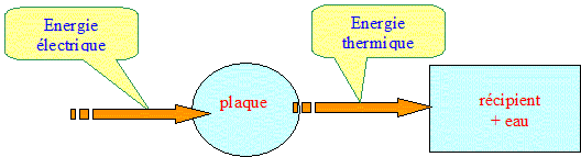 Représenter les différents transferts d'énergie entre la plaque et le système et les nommer.