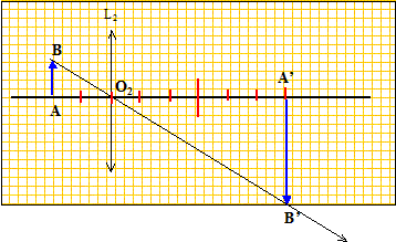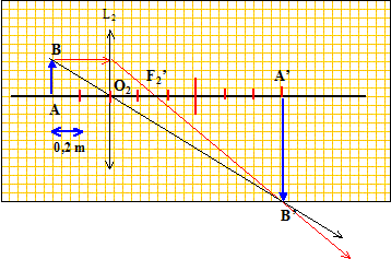 Conditions de Gauss d'obtention de bonnes images : - objet de petites dimensions placé au voisinage de l'axe optique principal - éliminer (utiliser un diaphragme) les rayons lumineux trop inclinés sur l'axe optique principal. II. lentille L2 : Détermination graphique :