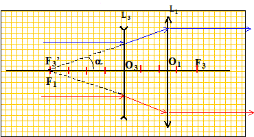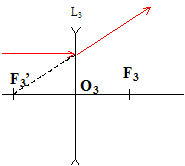 L'élève utilise les lentilles L1 et L3 pour réaliser un système afocal. Pour cela il place les deux lentilles de telle façon que leurs axes optiques soient confondus, la lumière traversant d'abord L3 puis L1. Système afocal : Lorsque l'image définitive est à l'infini, le système est dit afocal. Soit un rayon incident sur L3 parallèle à l'axe optique, la direction du rayon émergent de L3 est :
