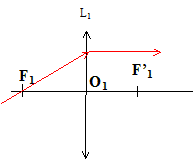 Le rayon émergent de L1 étant parallèle à l'axe optique, la direction du rayon incident sur L1 est :