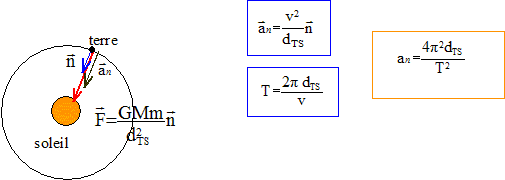 Le mouvement du centre de la terre est assimilé à un mouvement circulaire uniforme autour du soleil à une distance dTS. La période T de ce mouvement vaut 365,25 jours T= 365,25*24*3600 ;