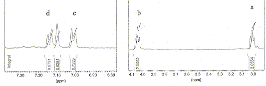 Les hydrogènes échangeables ne sont pas liés de manière stable à une molécule ; ils sont en équilibre avec les hydrogènes du solvant. Les protons liés à des groupes amines et hydroxy sont des protons échangeables. Un pH trop élevé accélère léchange des protons échangeables avec le solvant : le solvant utilisé a des propriètés basiques. La réaction correspondant à l'échange de protons hydroxyliques est une réaction acide base. Triplet à 3 ppm, ( la courbe d'intégration indique deux protons) : -CH2-F ( F noyau benzénique) Triplet à 4 ppm, ( la courbe d'intégration indique deux protons) : -CH2-OH. singulet à 7,1 ppm : proton aromatique sans proton en position a. Doublets à 7 ( en a du CH2-) et 7,2 ppm : deux protons aromatiques situés en a l'un de l'autre . donc structure C. Exercice