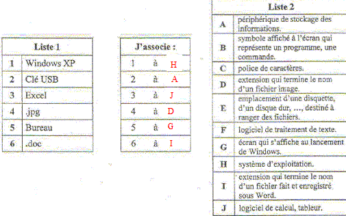 Mettre en relation les listes 1 et 3 en complétant le tableau central.