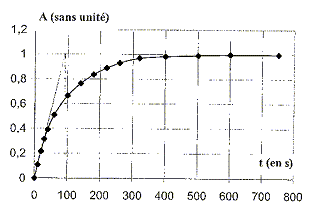 A=f(t) présente une asymptote horizontale ; celle-ci