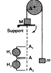 vitesse v = at ; distance z = ½at2 ; v2 = 2az Au point A1 : z=½at2 (3) Au point A : z+d = ½a(t+q1)2 (4) Au point A2 : z+2d=½a(t+q1+q2)2 (5) (4) -(3) donne : d=½a[(t+q1)2 -t2 ]=½aq1(2t+q1) (5) -(4) donne : d=½a[(t+q1+q2)2-(t+q1)2 ]=½aq2(2t+2q1+q2) q1(2t+q1) =q2(2t+2q1+q2) 2t(q1-q2) = q22-q12+2q1q2 ; 2t + q1 =( q22+q1q2) / (q1-q2) or d= ½aq1(2t+q1) d'où d=½aq1q2( q2+q1) / (q1-q2) a = 2d(q1-q2) / [q1q2( q2+q1)].
