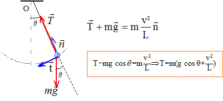 T = 2p [L/g]½. B- La période du mouvement est proportionnelle à L. Faux. C- La vitesse maximale atteinte est indépendante de m. Vrai. th de l'énergie cinétique entre A et M : DEc=½mv2 - 0 La tension du fil perpendiculaire à la vitesse ne travaille pas. travail du poids ( de A vers M) ; origine des altitudes : la position d'équilibre) W = mgL(cosq- cos qA). ½mv2 = mgL(cosq- cos qA) ; v2 =2gL(cosq- cos qA) D- La tension du fil est de norme constante au cours du mouvement. Faux.