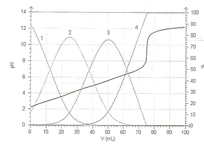On observe un seul saut de pH car les pKa sont assez proches les uns des autres. la ( les) réaction(s) de dosage : H3A + HO- --> H2A- + H2O H2A- + HO- --> HA2- + H2O HA2- + HO- -->A3- + H2O Bilan : H3A + 3