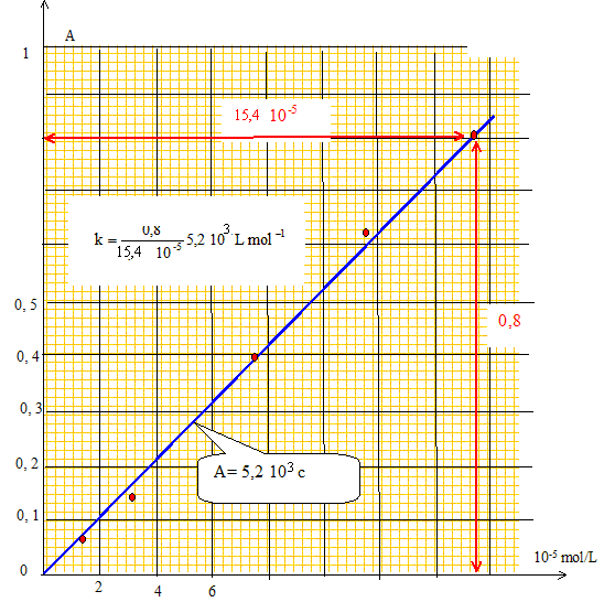 Concentrations c en mol/L du métal M dans les solutions étalons : c0 =0,1 g /L soit 0,1/65 = 1,54 10-3 mol/L.