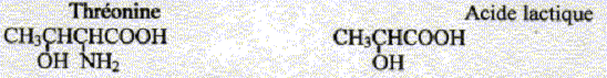 En présence d'enzymes spécifiques, le catabolisme de la thréonine conduit à l'acide lactique.