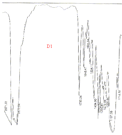 Le groupe C=O donne une bande intense, de largeur moyenne, située dans la région entre 1820 et 1660 cm-1. La présence des bandes vers 2870 indique la présence du groupe OH. |