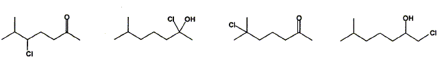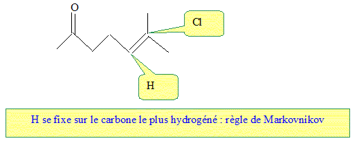 Le traitement de la 6-méthylhept-5-ène-2-one par l''acide chlorhydrique conduit à un dérivé chloré C8H15ClO. Quelle est sa formule semi-développée ?