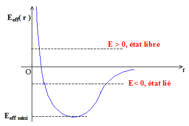 Le terme ½mr'² représente l'énergie cinétique d'une particule de masse m effectuant un mouvement suivant r : énergie cinétique radiale. Tracer l'allure de Eeff (r) en fonction de r.