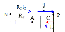 dq/dt. E= q/C + R2dq/dt. q/(R2C) + dq/dt = E/ R2 ; on pose t2 = R2C q/ t2 + dq/dt = E/ R2 (2) solution de cette équation différentielle sans second membre : q = B exp(-t/t2 ) solution particulière de (2), régime permanent, condensateur chargé : Q = CE. solution générale de (21) : q = B exp(-t/t2) + CE. Condition initialeq = 0 d'où : 0 =B +CE ; B = -CE. q = CE ( 1-exp(-t/t2 ). Or i2 = dq/dt d'où i2 = CE/t2 exp(-t/t2) i2 = E/ R2 exp(-t/t2). i = i1+i2 = E/R1 ( 1-exp(-t/t1 ) +E/ R2 exp(-t/t2).