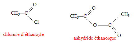 On considère l'alcool A dont la masse molaire est égale à 46 g/mol. Donner la formule brute de A. Formule générale d'un alcool CnH2n+2O ; M= 12n+2n+2+16 = 46 ; n = 2 C2H6O éthanol. L'alcool A réagit avec l'acide éthanoïque CH3-COOH pour donner un produit E et de l'eau. Donner l'équation bilan de la réaction et nommer E. estérification : CH3-COOH+ CH3-CH2OH = CH3-COO-CH2-CH3 + H2O L'ester est l'éthanoate d'éthyle. Deux autres réactifs C ou D peuvent réagir avec A pour obtenir le même produit E. Donner les formules semi-développées de ces réactifs.