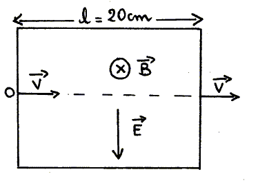 Les vecteurs sont écrits en gras et en bleu. Un faisceau d'électrons pénètre en O dans une région de longueur l=20 cm où règne un champ électrostatique uniforme de module E = 2 104 V/m et un champ magnétique uniforme B perpendiculaire à E.