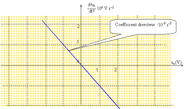 Montrer que l'équation différentielle de l'évolution de l'oscillateur entretenu peut être écrite : d2uc/dt2 + k uc=0. La partie droite du circuit simule une résistance négaative -R0. Additivité des tensions : uc + Ri + Ldi/dt -R0i =0 avec i= dq/dt et q= Cuc soit i = Cduc/dt et di/dt = C d2uc/dt2. d'où uc +( R-R0)Cduc/dt + LCd2uc/dt2 =0 si R=R0 les oscillations sont entretenues. uc + LCd2uc/dt2 =0 ; d2uc/dt2 + 1/(LC) uc = 0. Nommer la grandeur k et donner son unité S.I. On pose k = (LC)-1. k est une pulsation au carré ; son unité est ( rad s-1)2.