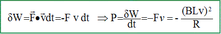 induction. Le module de F vaut : F= B2L2 v/R. Ce phénomène montre la réversibilité du moteur électrique. Fonctionnement en moteur : la barre AB, traversée par un courant, placée dans un champ magnétique est soumise à une force, sous l'action de laquelle elle se déplace. Le moteur est un récepteur électrique. Fonctionnement en générateur : la barre AB se déplaçant dans un champ magnétique génère un courant électrique dans le circuit. Bilan énergétique du freinage de la barre : Partant de sa vitesse initiale v0, la barre est freinée et fini donc par s'arrêter. On va effectuer un bilan d'énergie dans le circuit pour comprendre la nature du transfert énergétique qui permet le freinage. Déterminons le travail dW de la force électromagnétique F au cours du déplacement dx=vdt. En déduire la puissance mécanique correspondante P =dW /dt en fonction de R et i.