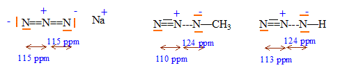 Le caractère ionique de la liaison X-N : Les éléments sodium et azote ont des électronégativités très différentes : NaN3 possède une structure ionique. Par contre les éléments carbone, hydrogène et azote ont des électronégativités assez proches : la liaison C-N dans CH3N3 et la liaison H-N dans HN3 auront un caractère covalent plus marqué.