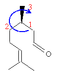 numéroter de façon décroissante chacun des quatre substituants selon son numéro atomique. CH2 -CHO (1) ; CH2 -CH2 -CH=C(CH3)2 (2) ; CH3 (3) ; H (4). On place alors l'atome (ou le groupement) de numéro le plus élevé derrière. On regarde dans quel sens, sens horaire ou trigonométrique, on passe du numéro 1, au 2, au 3. - Si le sens de rotation est le sens horaire (ou anti-trigonométrique), le carbone est Rectus (R), - Si le sens de rotation est le sens trigonométrique (ou anti-horaire), le carbone est Sinister (S). Dextrogyre : qui a la propriété de faire dévier le plan de polarisation de la lumière polarisée dans le sens des aiguilles dune montre. (vers la droite) Il n'existe pas de relation générale entre