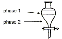 La phase la plus dense ( l'eau d = 1) occupe la partie inférieure ; la phase la moins dense ( le cyclohexane d = 0,78) occupe la partie supérieure. L'alcool benzylique en excès est très soluble dans le cyclohexane. L'ion benzoate, l'ion hydroxyde, l'ion potassium, l'ion sodium sont très solubles dans l'eau.