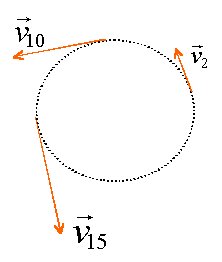 faire un calcul de vitesse moyenne sur le parcours point 9 - point 11 distance parcourue: (2,24-1,67)107 =5,7 106 m durée correspondante: 1000 s vitesse v10 = 5,7