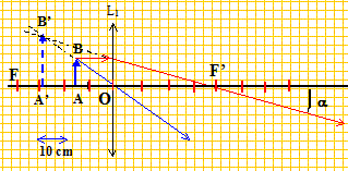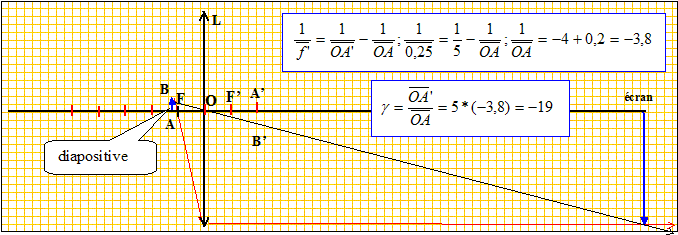 centre optique de la lentille. Question relative à la hauteur de l'imageA'B'.
