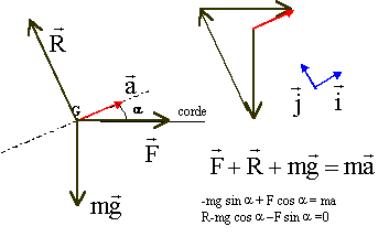 Chute libre. Texte : la vitesse initiale est nulle. L'altitude initiale vaut h. L'objet parcourt 9,5 m lors de la dernière seconde de chute. Analyse : Question relative à la vitesse ( km/h) d'arrivée au sol. ( 31 ; 38 ; 49 ; 52 ; 54 ; aucune réponse exacte ) On choisit un axe vertical orienté vers le bas ; l'origine est la position initiale. z(t) = ½gt2 ; On note t la durée de la chute : h = ½gt2 soit t = (2h/g)½. h = ½gt2 ; h-9,5 = ½g(t-1)2 ; 9,5 =½gt2- ½g(t-1)2 ; 2*9,5/9,81 = t2-(t-1)2 ; 1,937 = (2t-1) ; t = 1,468 s. vitesse v = gt ; v = 9,81*1,468 = 14,4 m/s ; 14,4 *3,6 =52 km/h.