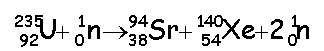 U =234,9942 u ; Sr=93,9154 u ; Xe=139,9252 u ; neutron : 1,0087 u ; 1u=1,6606 10-27 kg =931,5 MeV/c² 1eV=1,602 10-19C Calculer l'énergie libérée (en MeV) par cette réaction. perte de masse : |Dm| = | 139,9252 + 93,9154+1,0087-234,9942 |= 0,1449 u Energie libérée : 0,1449* 931,5 = 135 MeV. On suppose que toute les fissions sont identiques à la précédente . On suppose que le rendement de la transformation de l'énergie nucléaire en énergie électrique est de 30%. Calculer la masse d'uranium 235 (en kg) consommée en 200 j par le sous-marin dont le réacteur a une puissance de 30 MW. Puissance thermique : 30 106 / 0,3 = 108 W = 100 M W. Durée en seconde : 200*24*3600 = 1,728 107 s Energie thermique (J) = puissance (W) fois durée (s) =108*1,728 107 =1,728 1015 J. Energie libérée par une fission : 135 106 * 1,6 10-19 =2,16 10-11 J Energie libérée par une mole d'uranium 235 : 2,16 10-11 *6,02 1023= 1,3 1013 J. Quantité de matière (mol) d'uranium 235 : n=1,728 1015 / 1,3 1013 = 132,9 mol Masse molaire de l'uranium 235 : M=235 g/mol. Masse d'uranium consommé : nM=132,9*235 = 31,2 kg. Quel est le pourcentage