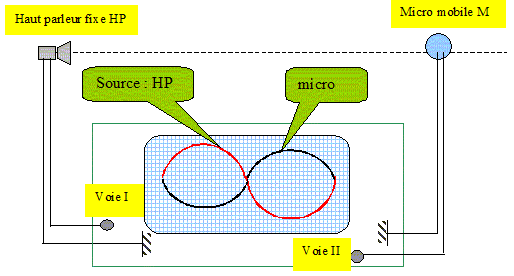 Onde sonore. Texte : Analyse : Question relative à l'état vibratoire du point M( micro) et de la source (HP) ? Ces points vibrent en opposition de phase : ils sont donc séparés par un nombre impair de demi longueur d'onde. On note L la distance haut parleur micro : L = (2n+1) ½l avec n entier positif ou nul. Question relative à la longueur d'onde. Si f = 1000 Hz et si L =0,675 m, on observe pour la 2è fois l'allure de cet oscillogramme, le micro s'éloigant depuis la source. l = 2L/(2n+1) =avec dans ce cas n=1 d'où l = 2*0,675/3 = 0,45 m.