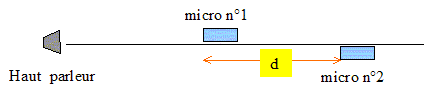 réflexion d'une onde sur un mur. Texte : Fréquence de l'onde : f = 1000 Hz ; célérité cair = 340 m/s ; L = 100 m. L'onde émise par le haut parleur se réfléchit sur le mur. L'oreille perçoit deux sons distincts si l'intervalle de temps séparant leurs réceptions est supérieur à 0,10 s. Analyse : Question relative à la distance d conduisant à la réception d'un seul son. L'onde incidente atteint l'auditeur à la date t1 =(L-d)/cair. L'onde incidente atteint le mur et se réfléchit à la date t =L/cair. L'onde réfléchie atteint l'auditeur à la date t2 =t+d/cair=( L+d)/cair. t2-t1 =2d/cair. L'oreille perçoit un son unique si t2-t1 est inférieur ou égal à 0,1 s. t2-t1 < =0,1 ; 2d/cair < =0,1 ; d < ½(t2-t1 )cair ; d <0,5* 0,1 *340 ; d <17 m.