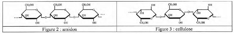 A l'aide des figures 2 et 3, préciser la différence entre la cellulose et l'amidon.